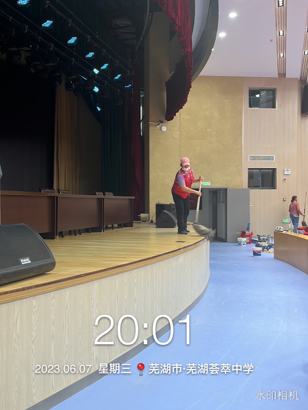 2023年6月8日,山水管家在蕪湖薈聚中學開始了保潔服務。作為一家專業的保潔服務機構,山水管家主要負責蕪湖薈聚中學校園內的日常清潔工作,主要是學校禮堂大廳的區域的清潔和衛生維護。山水管家的服務團隊由經驗豐富的保潔員組成,采用科學的清潔方法和最新的設備來保障校園環境的整潔和衛生。此外,山水管家還將定期進行質量檢查和反饋,確保服務的質量和效果。